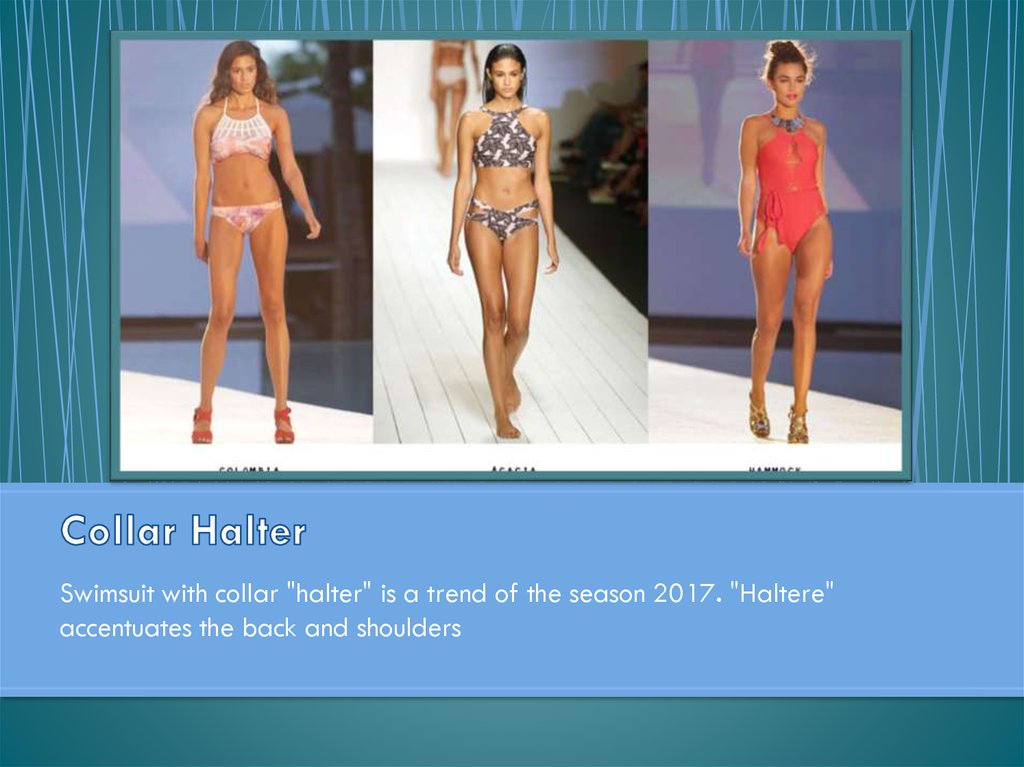 Swimsuit with collar "halter" is a trend of the season 2017. "Haltere"accentuates the back and shoulders