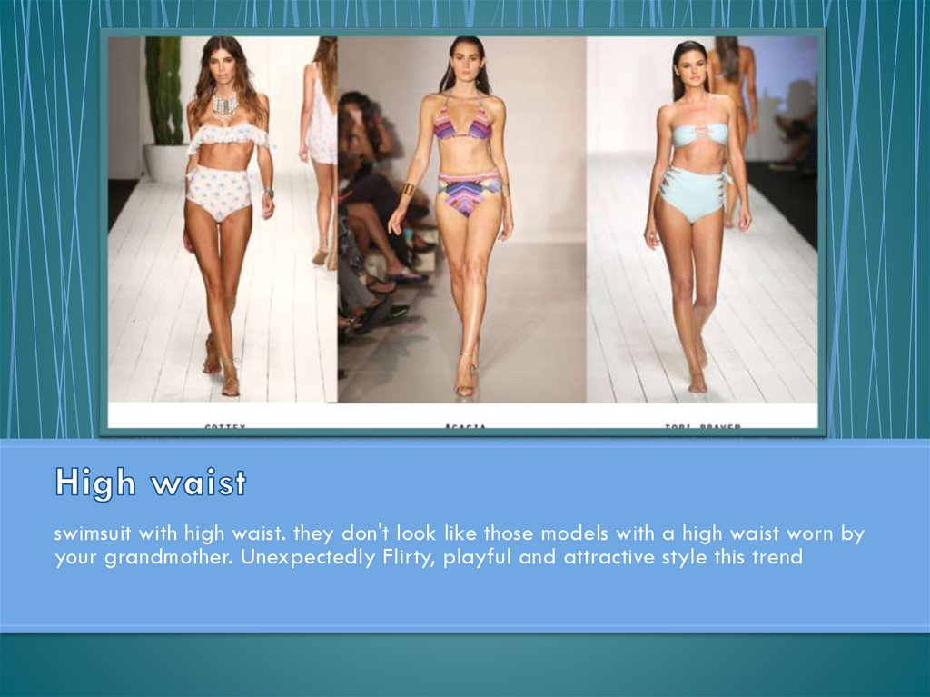 swimsuit with high waist. they don't look like those models with a high waist worn byyour grandmother. Unexpectedly Flirty, playful and attractive style this trend