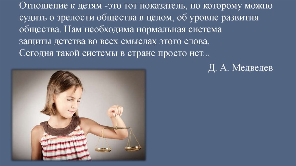 Отношение к детям -это тот показатель, по которому можносудить о зрелости общества в целом, об уровне развития