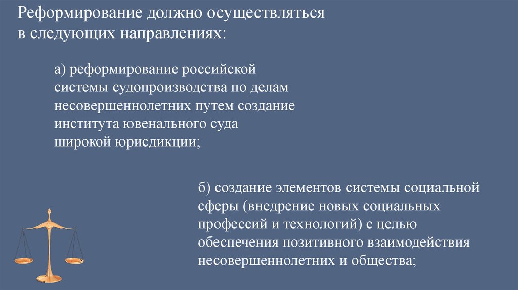 В процессе реформирования правосудия поделам несовершеннолетних на первый план,