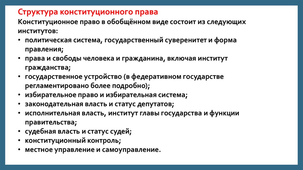 Структура конституционного праваКонституционное право в обобщённом виде состоит из следующих