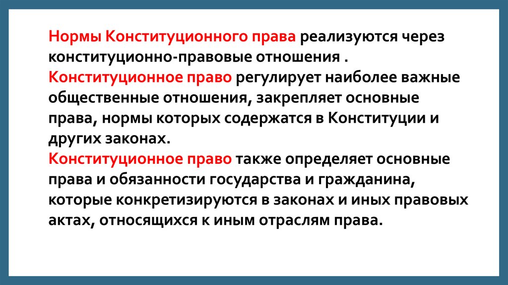 Нормы Конституционного права реализуются черезконституционно-правовые отношения .