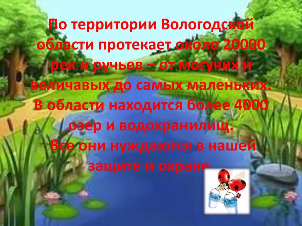 1. По территории Вологодской области протекает около 20000 рек и ручьев – от могучих и величавых до самых маленьких. В области находится более 40