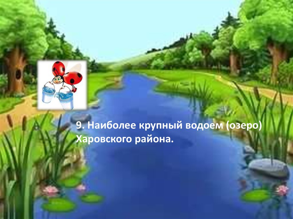 9. Наиболее крупный водоем (озеро)Харовского района.