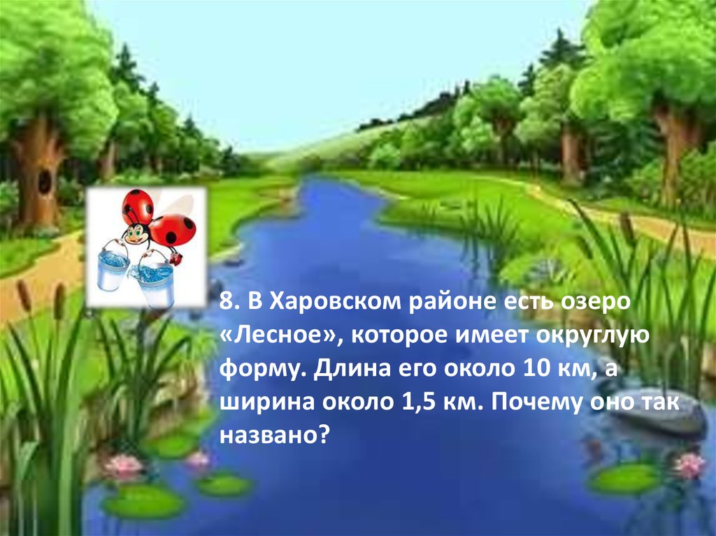 8. В Харовском районе есть озеро«Лесное», которое имеет округлую