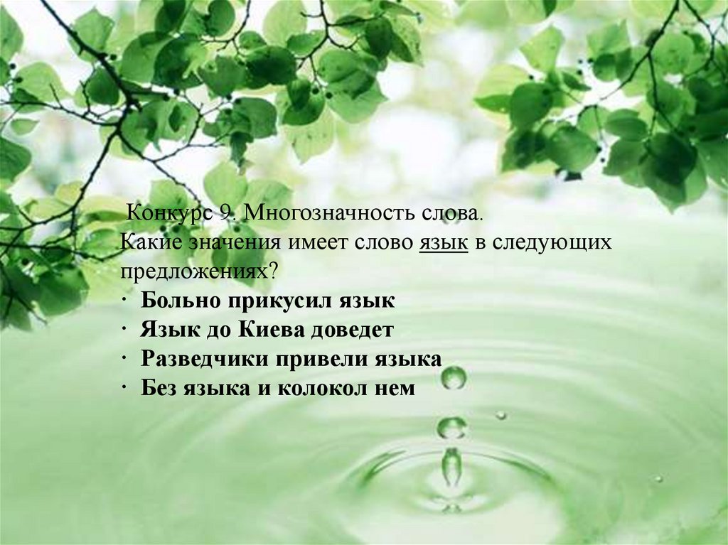 Конкурс 9. Многозначность слова.Какие значения имеет слово язык в следующих