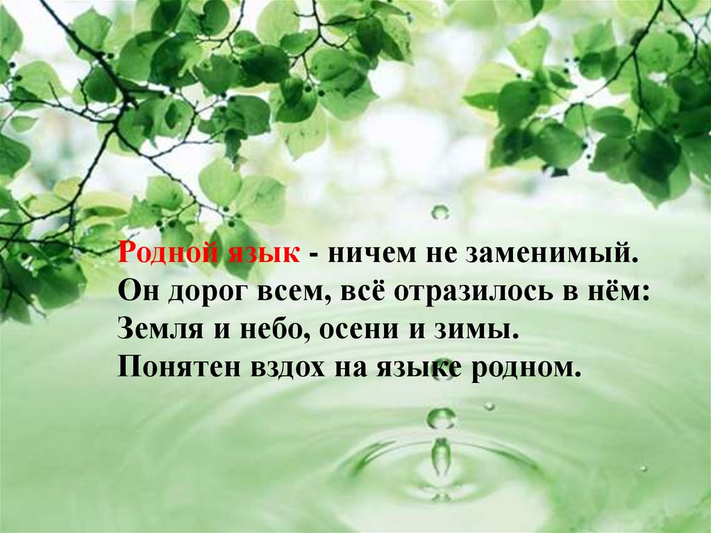 Родной язык - ничем не заменимый.Он дорог всем, всё отразилось в нём: