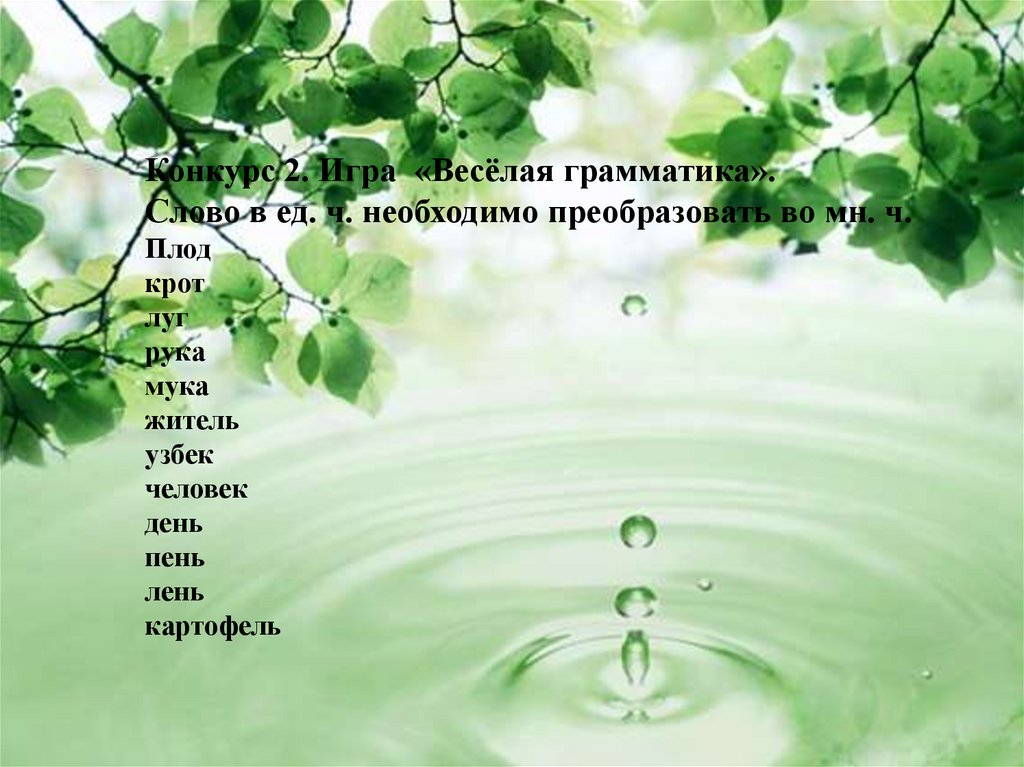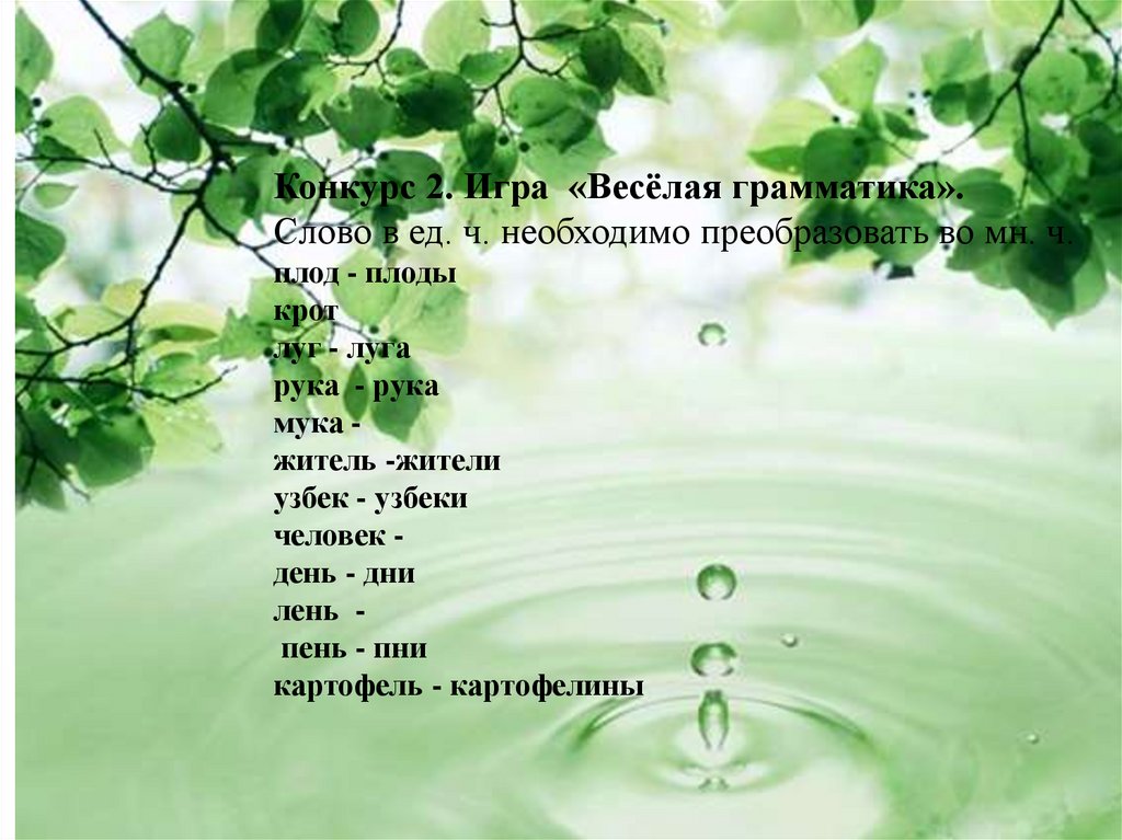 Конкурс 2. Игра «Весёлая грамматика».Слово в ед. ч. необходимо преобразовать во мн. ч.