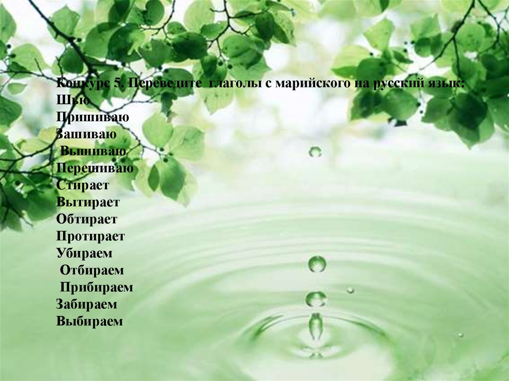 Конкурс 5. Переведите глаголы с марийского на русский язык:Шью