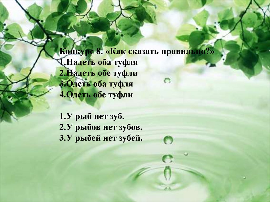 Конкурс 8. «Как сказать правильно?»1.Надеть оба туфля