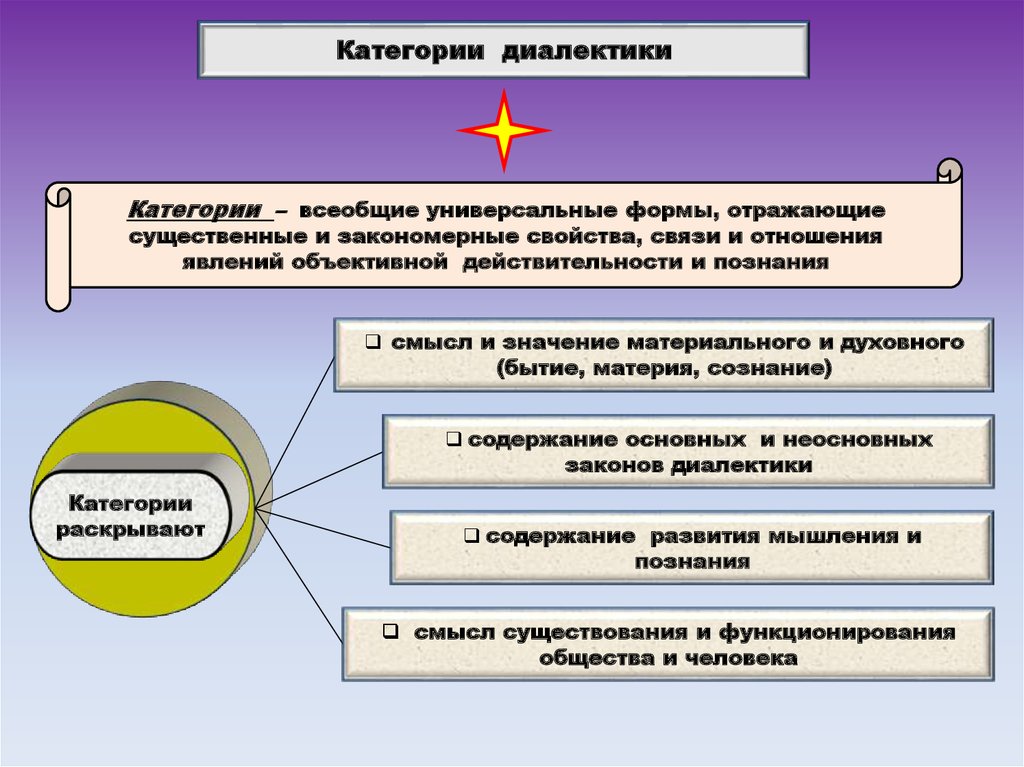 Категории диалектикиКатегории – всеобщие универсальные формы, отражающие