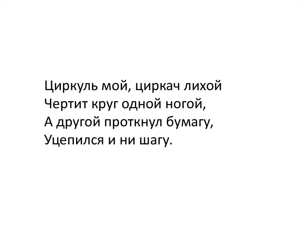 Циркуль мой, циркач лихойЧертит круг одной ногой,