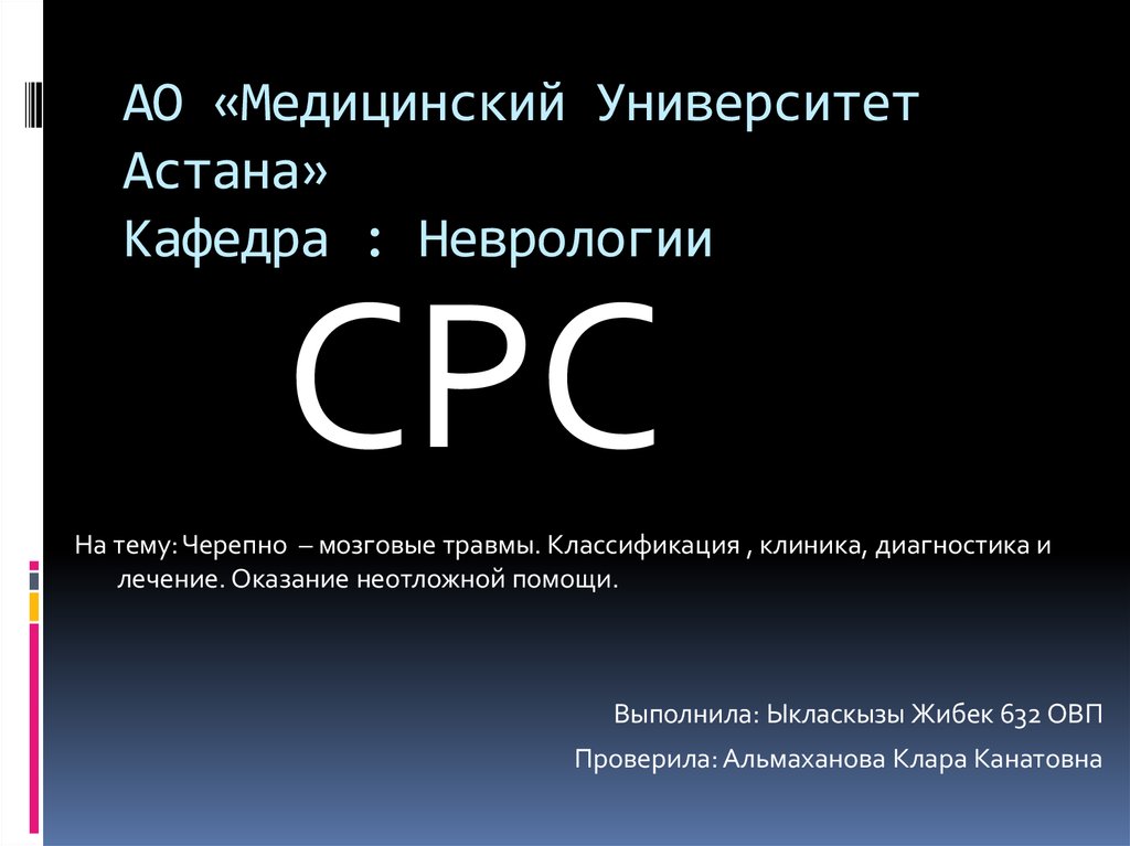 СРСНа тему: Черепно – мозговые травмы. Классификация , клиника, диагностика и