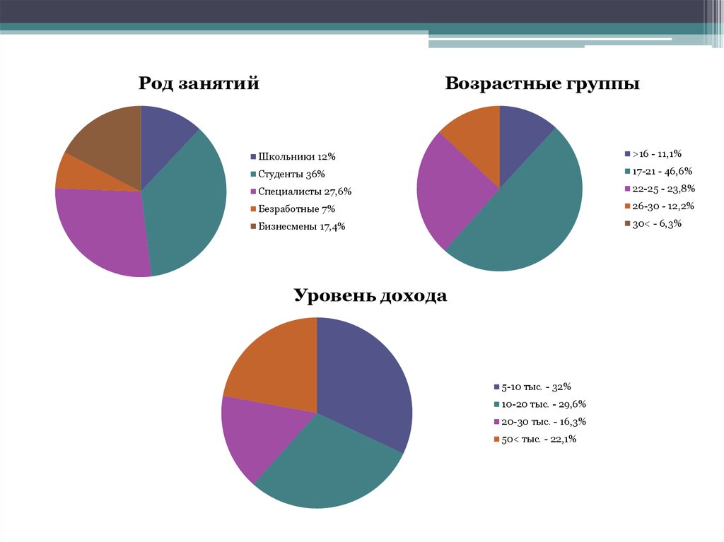 Род занятийВозрастные группы