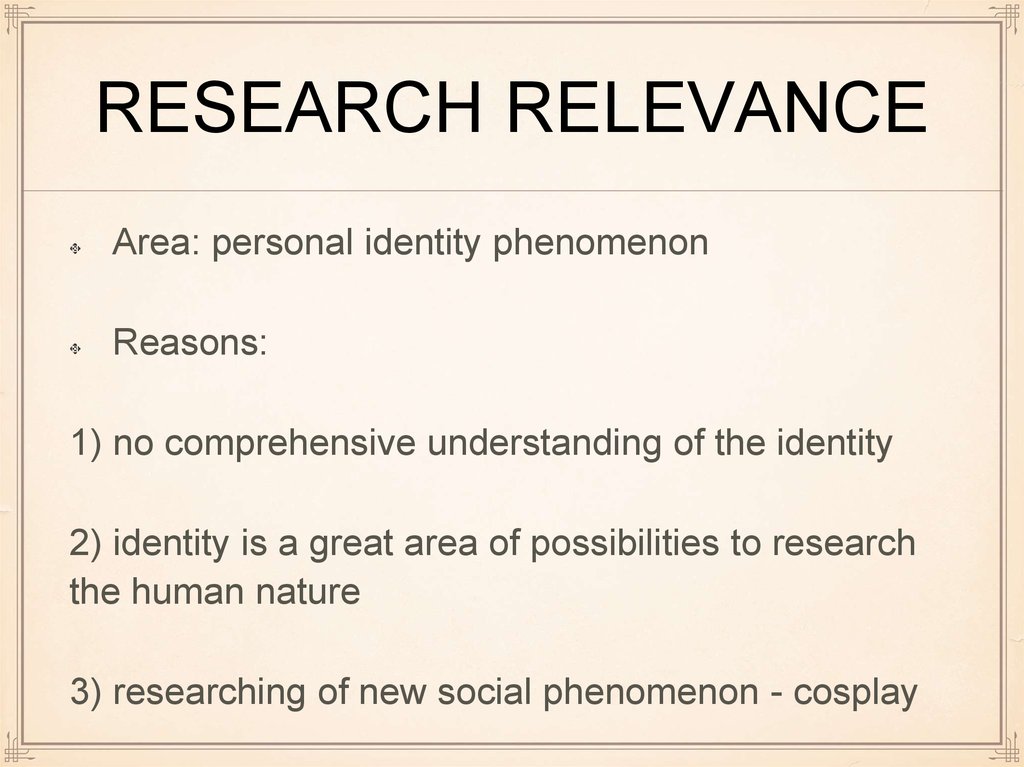 RESEARCH RELEVANCEArea: personal identity phenomenon