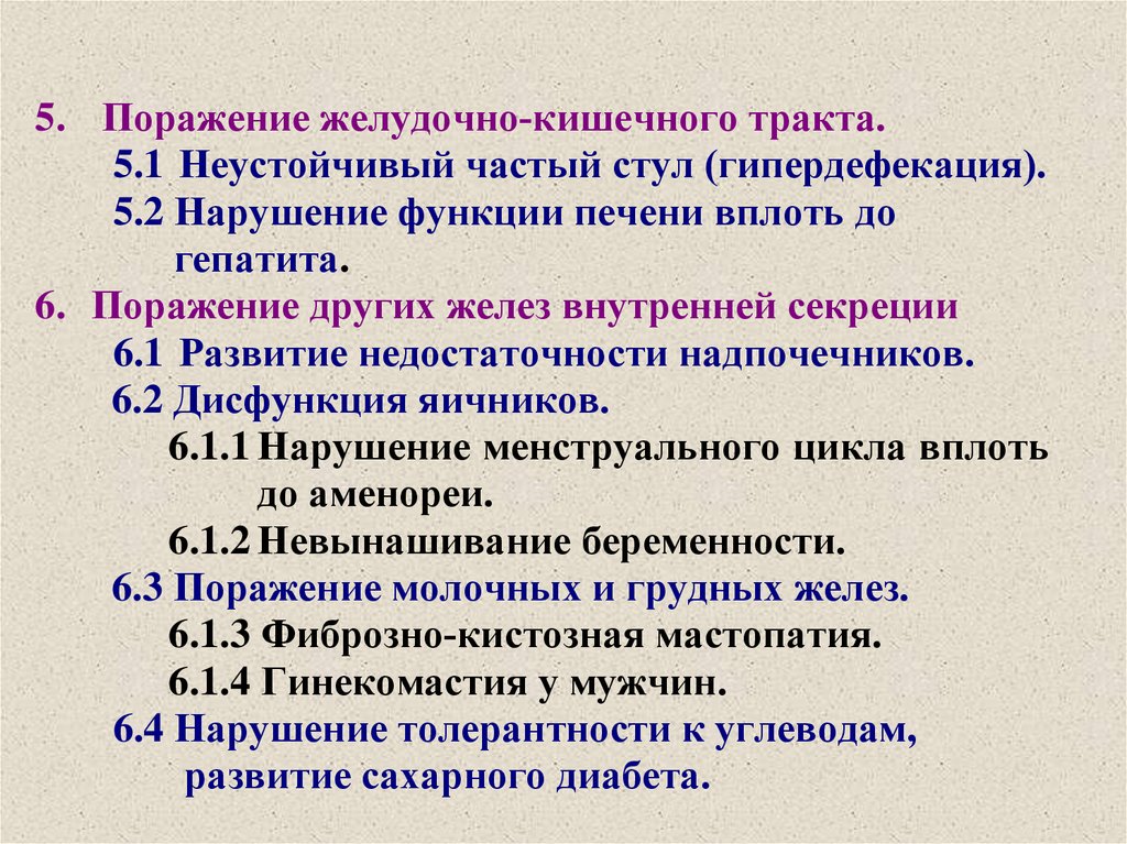 5. Поражение желудочно-кишечного тракта.5.1 Неустойчивый частый стул (гипердефекация).