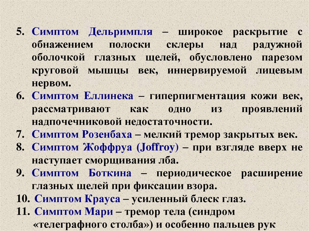 7. Симптом Розенбаха – мелкий тремор закрытых век.