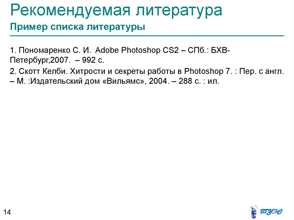 1. Пономаренко С. И. Adobe Photoshop CS2 – СПб.: БХВПетербург,2007. – 992 с.