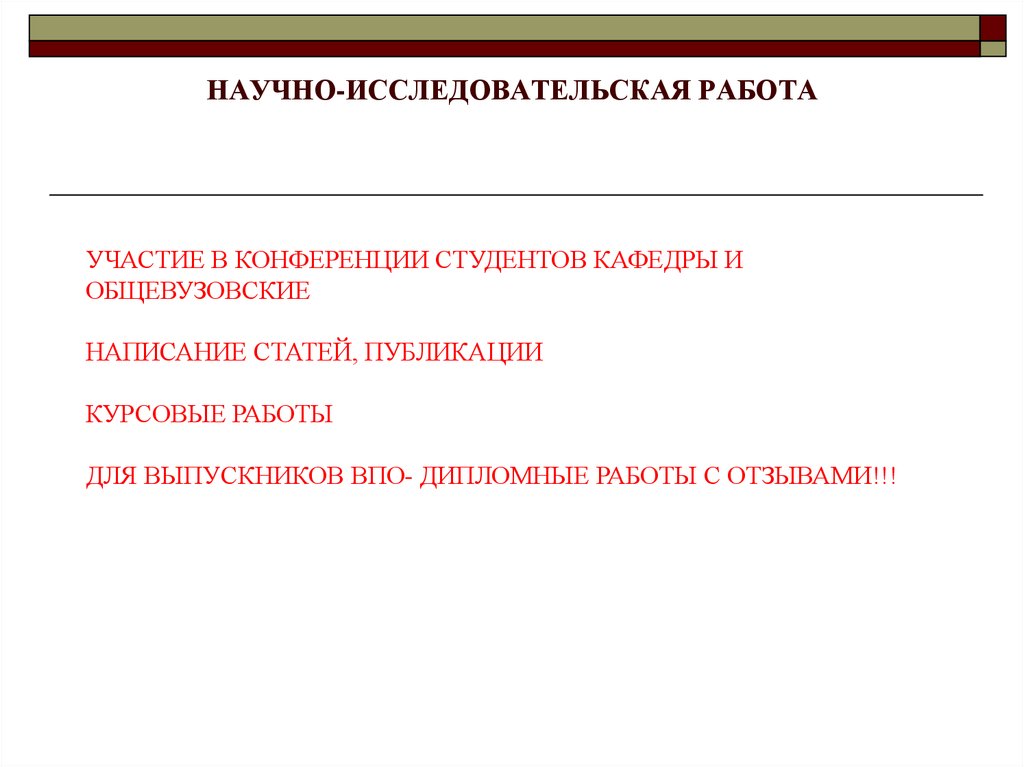 НАУЧНО-ИССЛЕДОВАТЕЛЬСКАЯ РАБОТАУЧАСТИЕ В КОНФЕРЕНЦИИ СТУДЕНТОВ КАФЕДРЫ И
