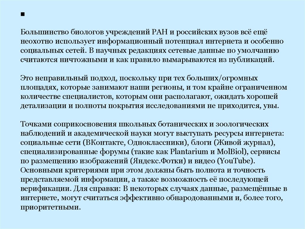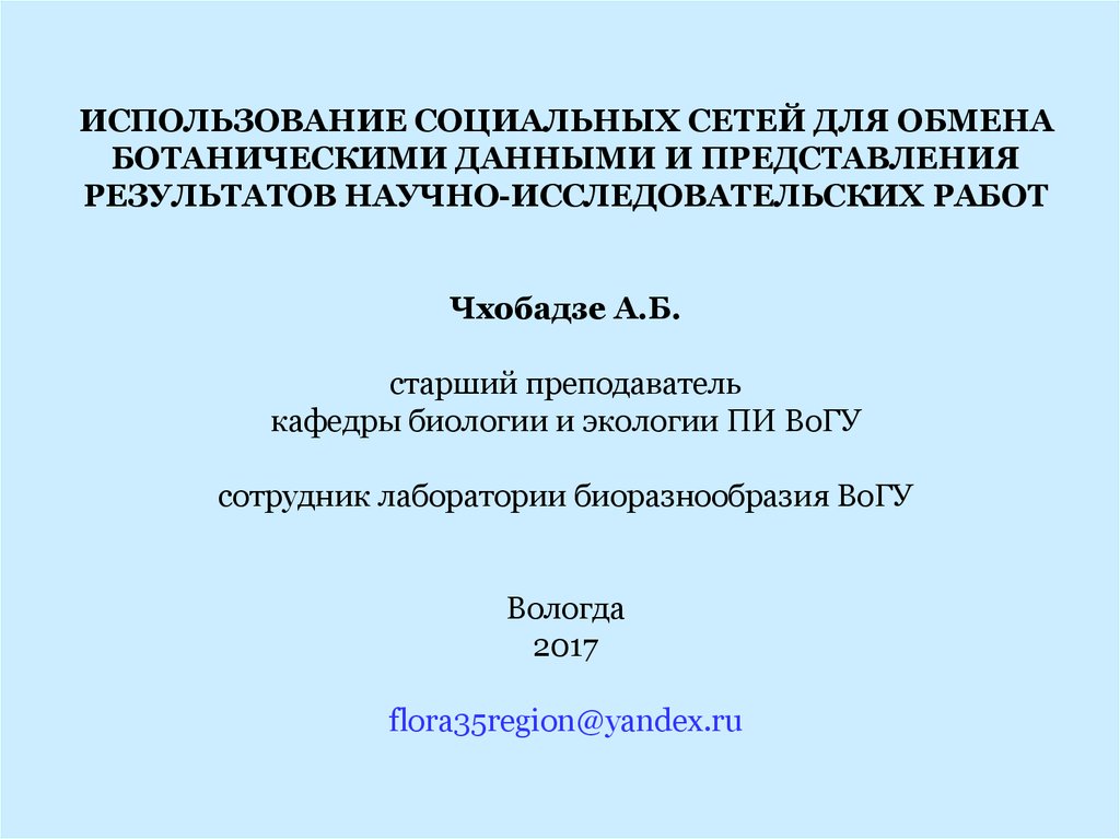 Использование социальных сетей для обмена ботаническими данными и представления результатов научно-исследовательских работ