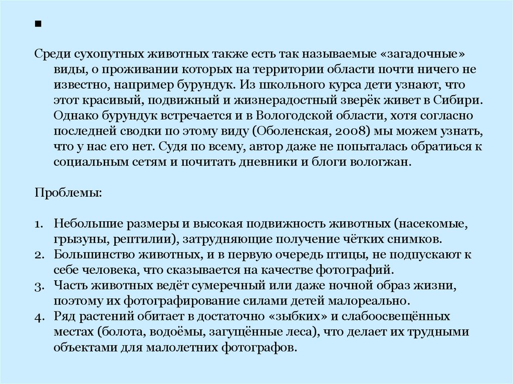 грызуны, рептилии), затрудняющие получение чётких снимков.