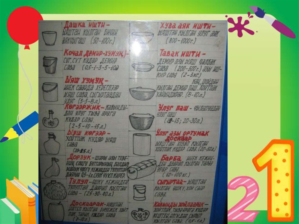 4. У тувинского народа не было строго определенных общепринятых единиц измерения. Измерения они производили приближенно и грубо. В повседнев