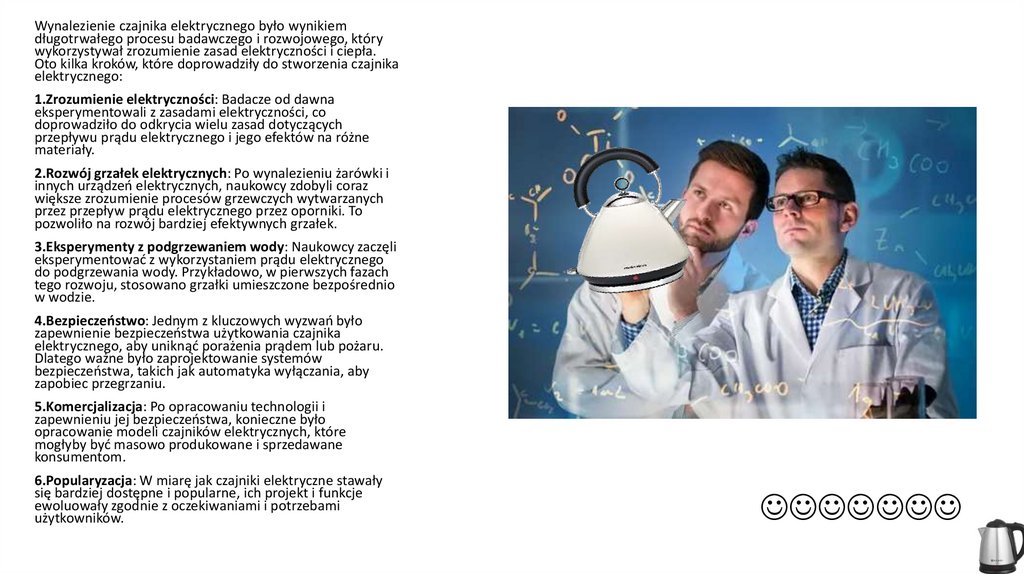 Wynalezienie czajnika elektrycznego było wynikiemdługotrwałego procesu badawczego i rozwojowego, który