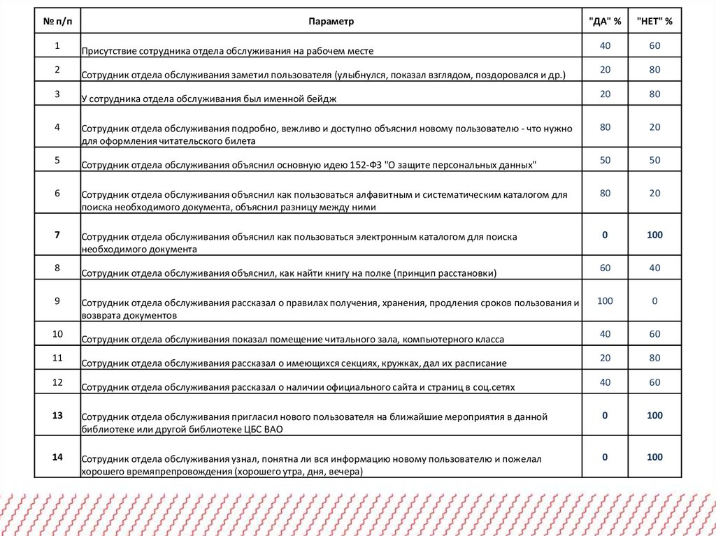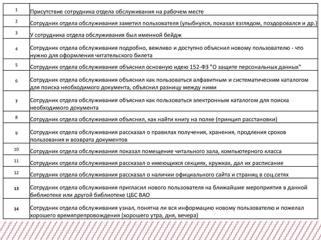 1Присутствие сотрудника отдела обслуживания на рабочем месте
