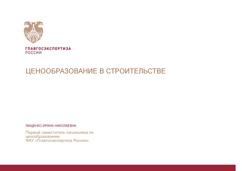 ЦЕНООБРАЗОВАНИЕ В СТРОИТЕЛЬСТВЕГОСУДАРСТВЕННАЯ
