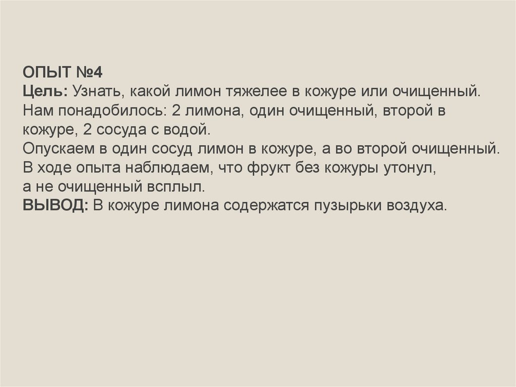 ВЫВОД: В кожуре лимона содержатся пузырьки воздуха.