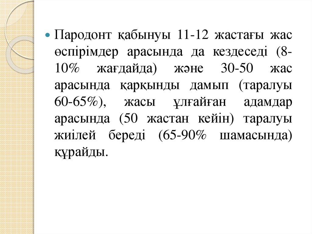 Пародонт қабынуы 11-12 жастағы жасөспірімдер арасында да кездеседі (810% жағдайда) және 30-50 жас