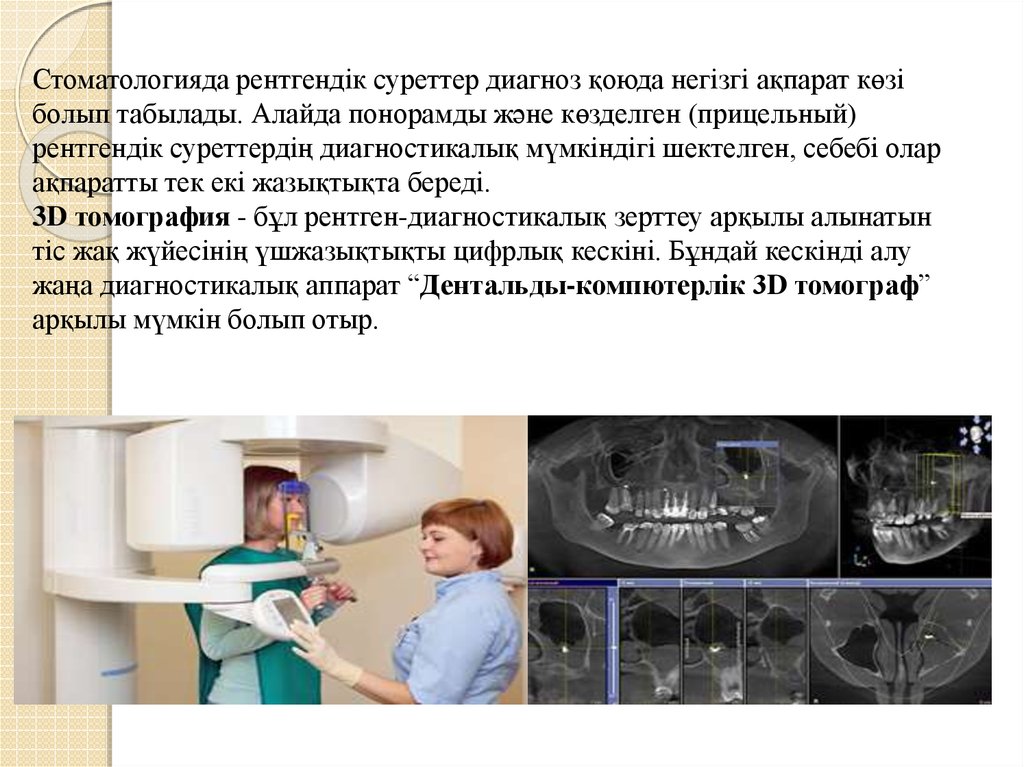 - Дентальды-компютерлік 3D томографиялау.