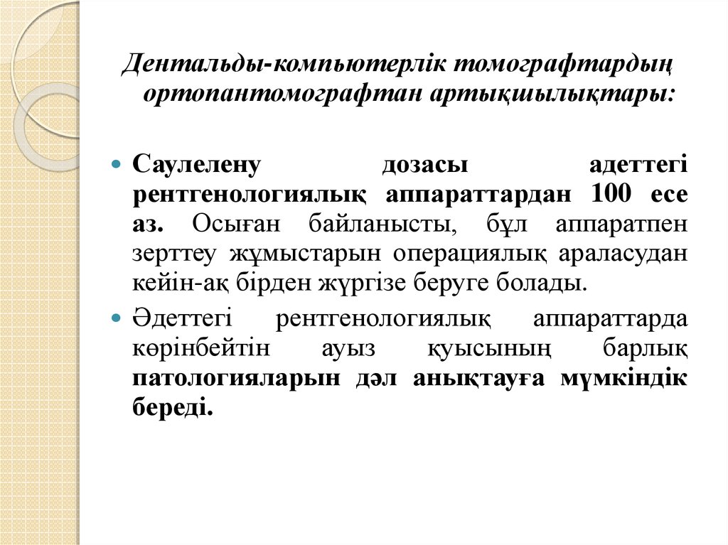 Дентальды-компьютерлік томографтардыңортопантомографтан артықшылықтары: