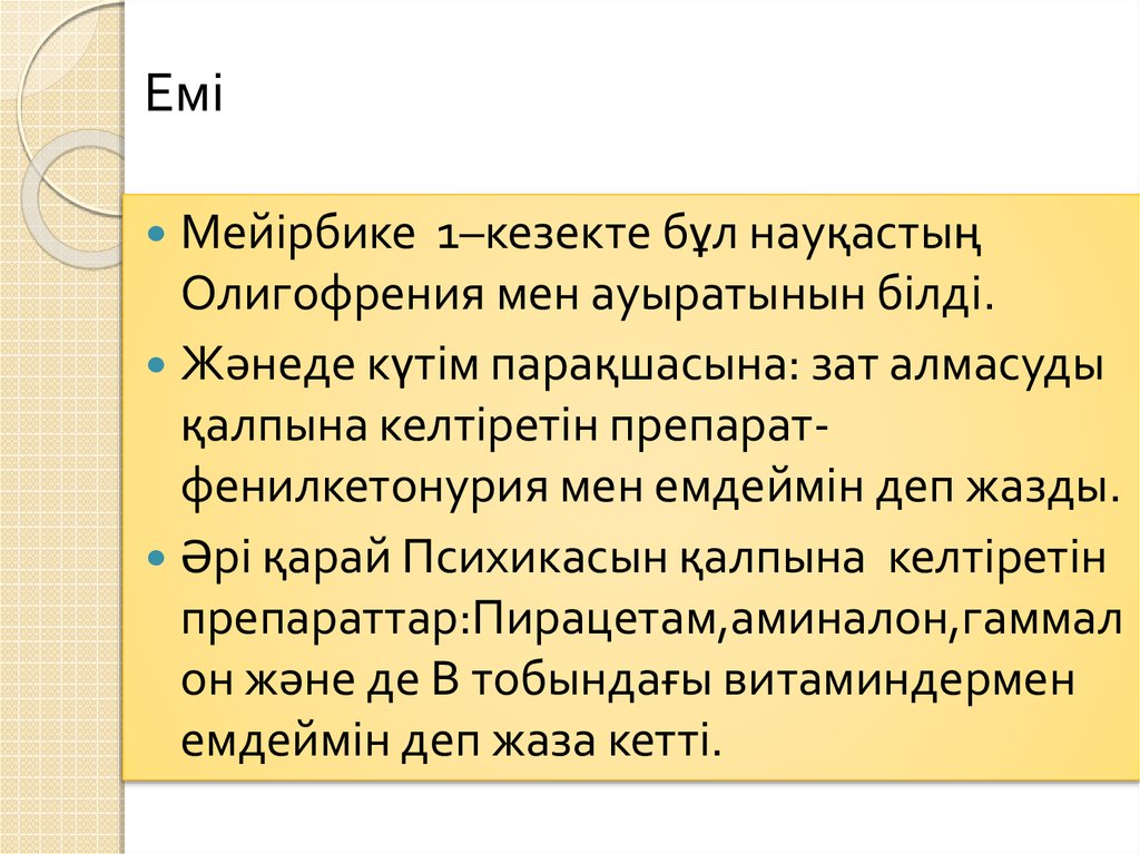 1.Олигофрения ауруы және емі