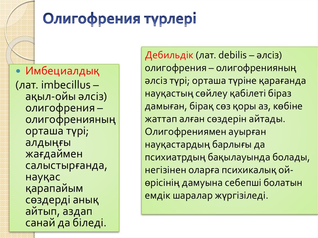 Олигофрения (грек. olіgos – аз жәнеphren – ақыл) – ақыл-ойдың кемдігі;