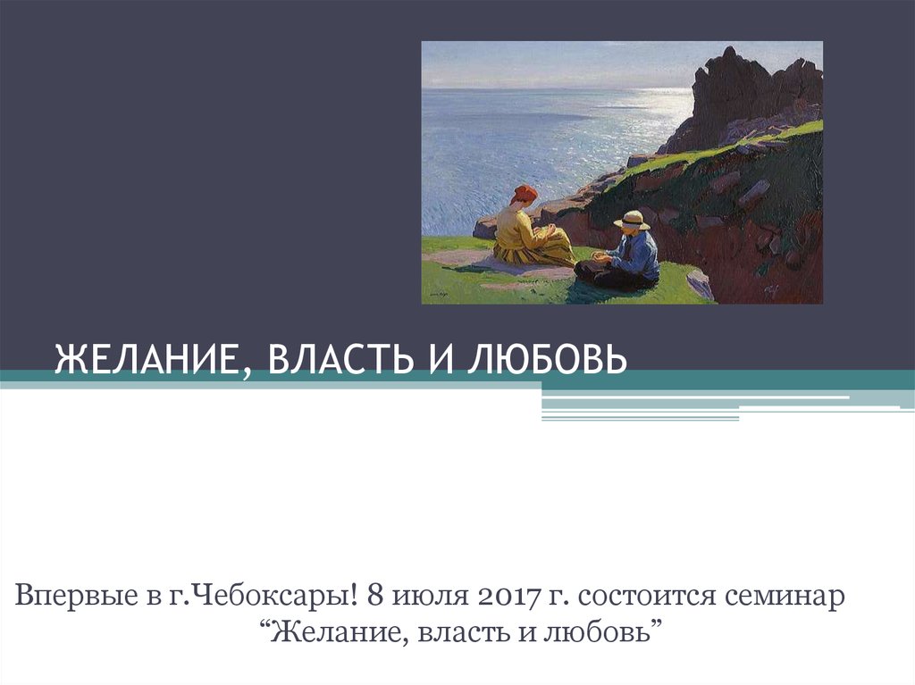 ЖЕЛАНИЕ, ВЛАСТЬ И ЛЮБОВЬВпервые в г.Чебоксары! 8 июля 2017 г. состоится семинар