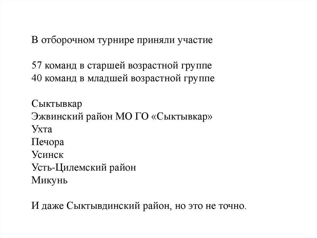 В отборочном турнире приняли участие57 команд в старшей возрастной группе