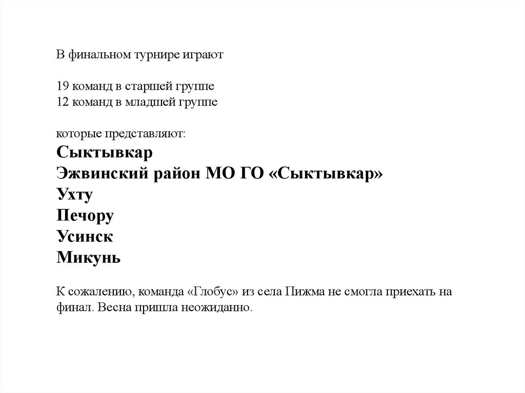 К сожалению, команда «Глобус» из села Пижма не смогла приехать на