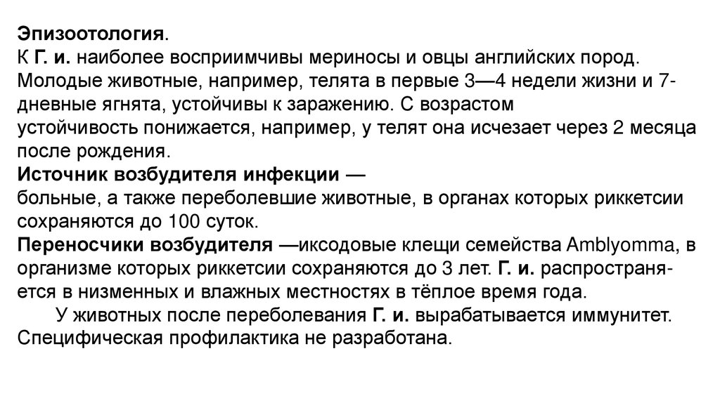 Эпизоотология.К Г. и. наиболее восприимчивы мериносы и овцы английских пород.