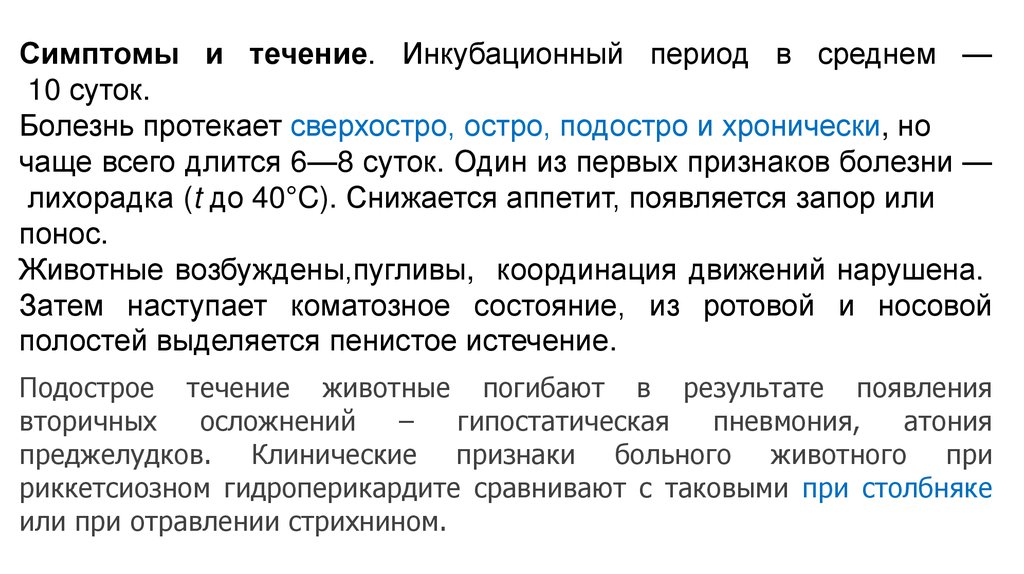 животного лихорадочное состояние и появление клиники