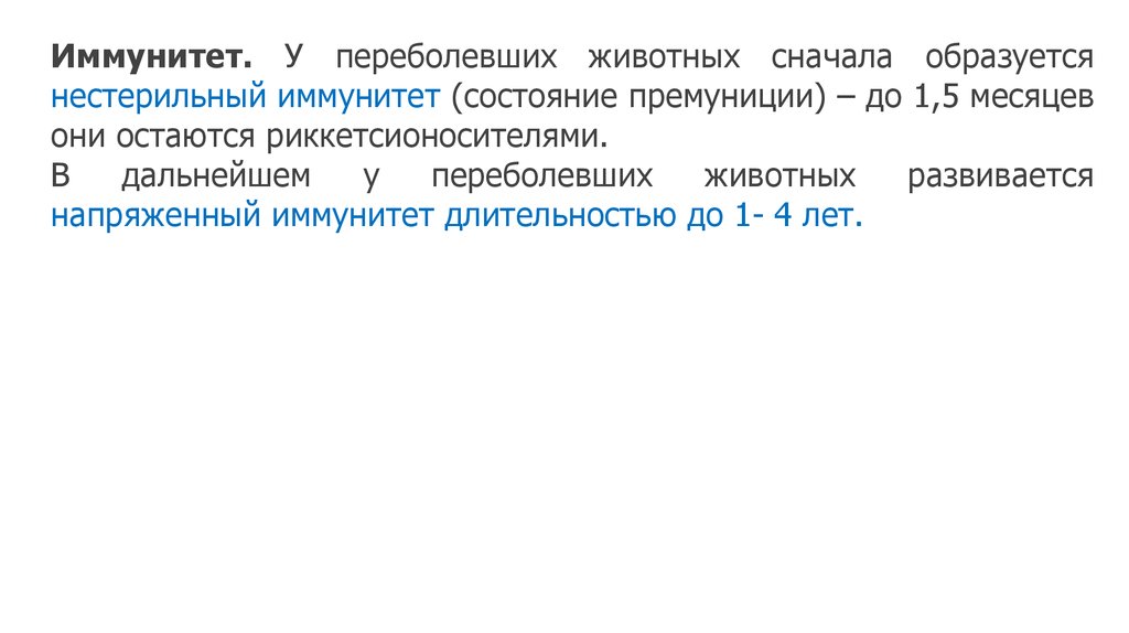 Иммунитет. У переболевших животных сначала образуетсянестерильный иммунитет (состояние премуниции) – до 1,5 месяцев