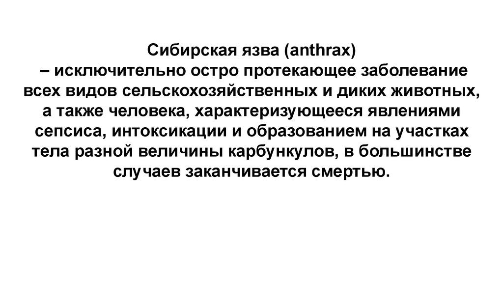 Сибирская язва (anthrax)– исключительно остро протекающее заболевание