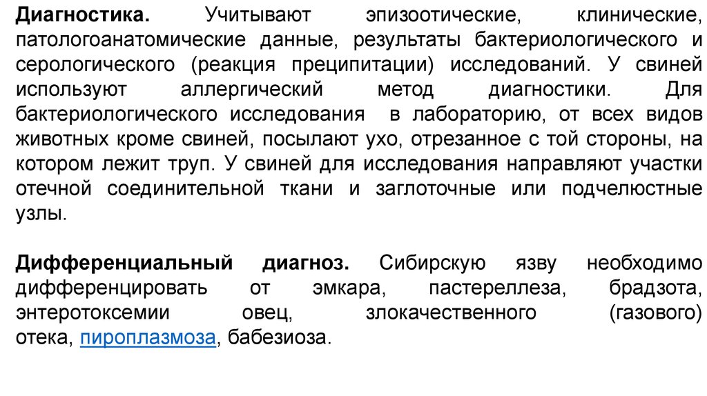 Дифференциальный диагноз. Сибирскую язву необходимо