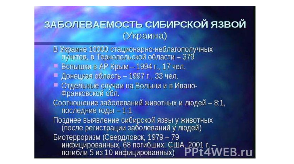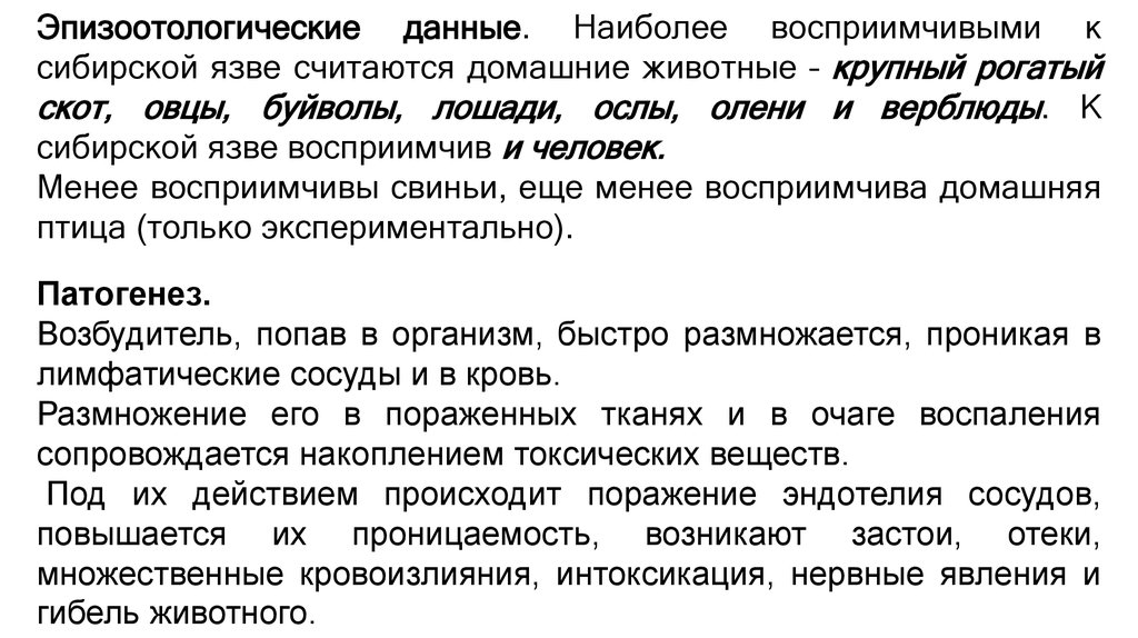 Эпизоотологические данные. Наиболее восприимчивыми ксибирской язве считаются домашние животные – крупный рогатый
