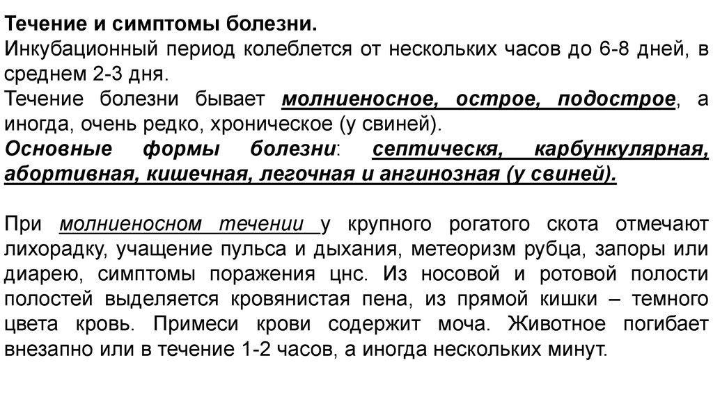 Симптомы сибирской язвы у мелкого рогатого скота схожи
