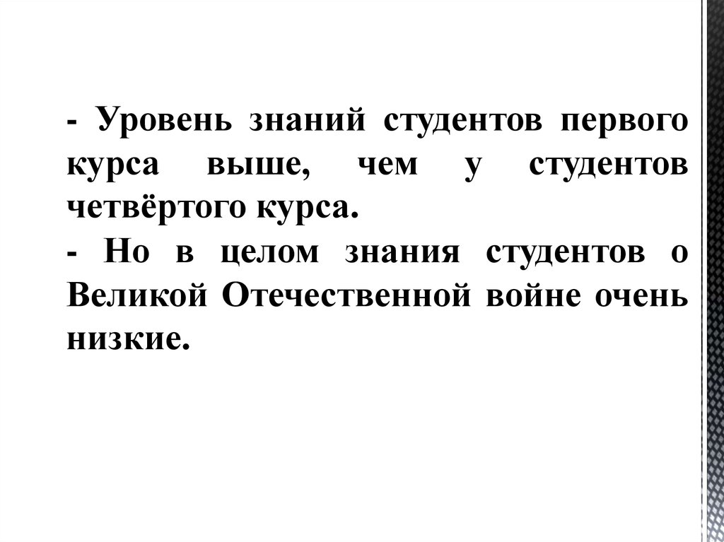 - Но в целом знания студентов о