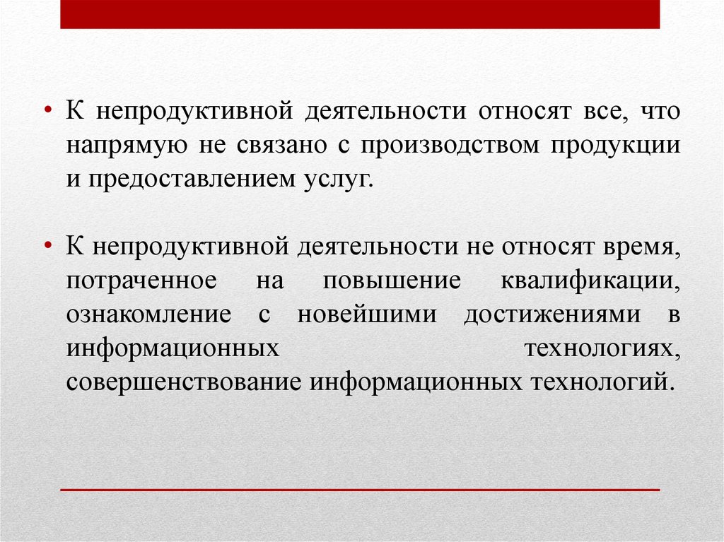 • К непродуктивной деятельности относят все, чтонапрямую не связано с производством продукции