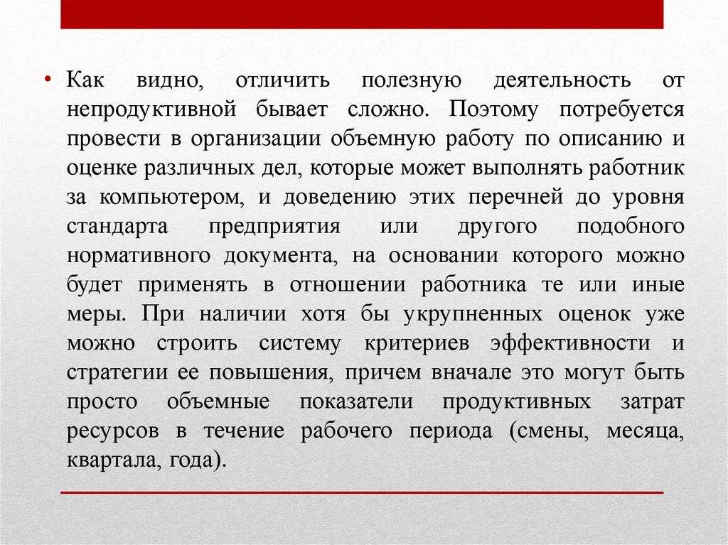 • Как видно, отличить полезную деятельность отнепродуктивной бывает сложно. Поэтому потребуется