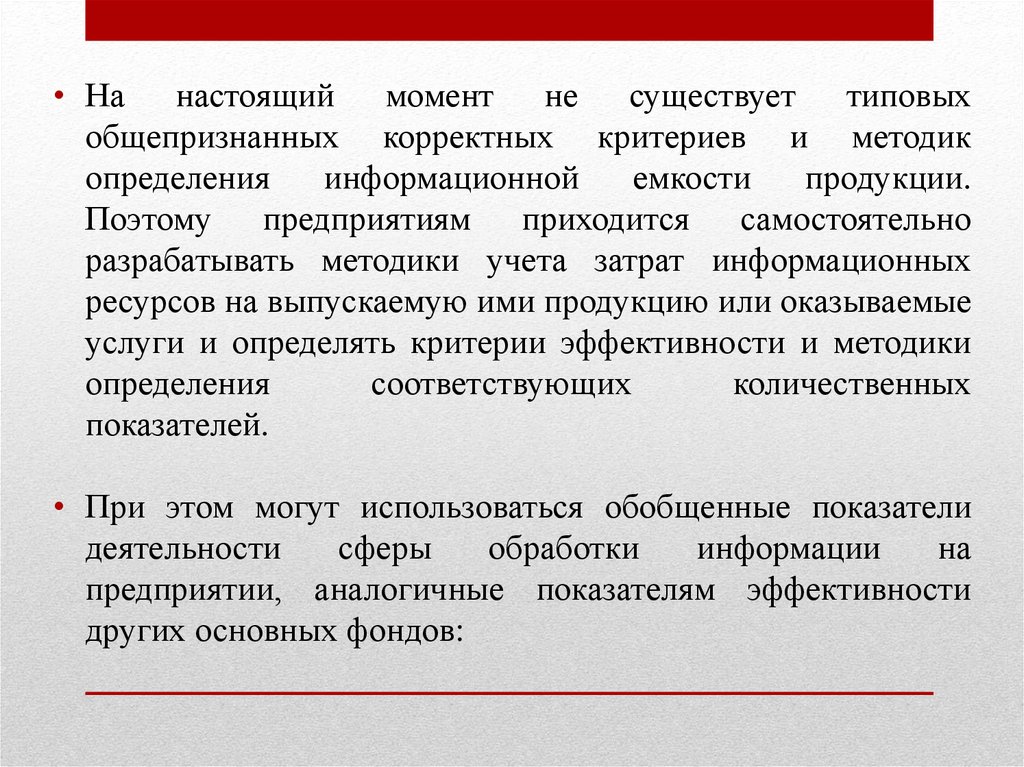 • На настоящий момент не существует типовыхобщепризнанных корректных критериев и методик