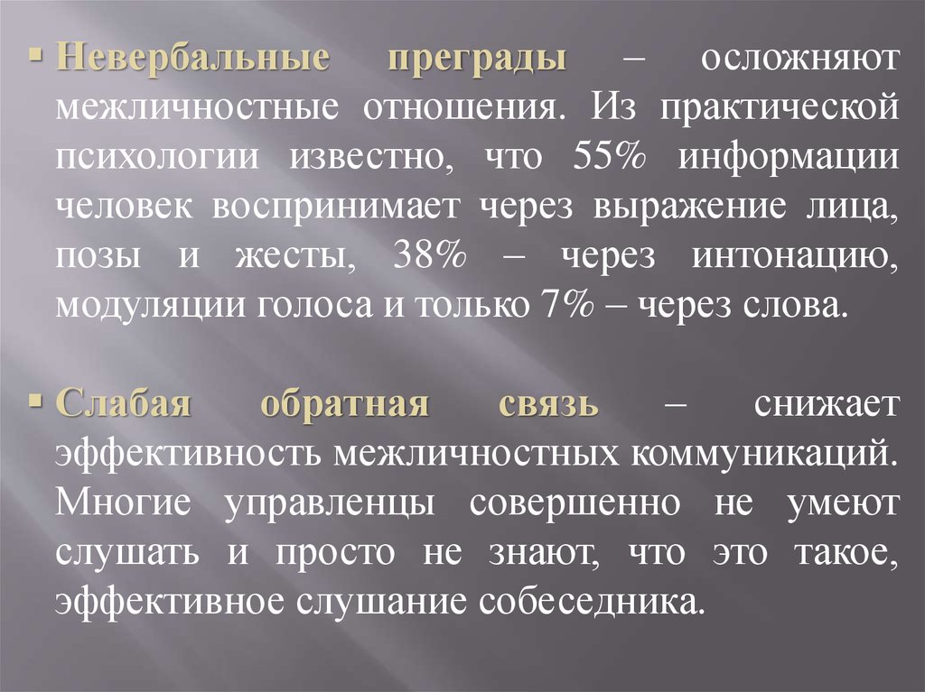 Невербальные преграды – осложняютмежличностные отношения. Из практической
